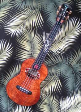 "I am thrilled with everything about the ukulele, from the craftsmanship, to the woods you chose, to the tone and balance of this beautiful little uke.....What impresses me most is the projection--this baby gets nice and loud without losing any touch or feel or clarity. A perfectly balanced instrument...I can't wait to get this baby in the studio. Mahalo again for making this such an easy process and for building such a great ukulele."